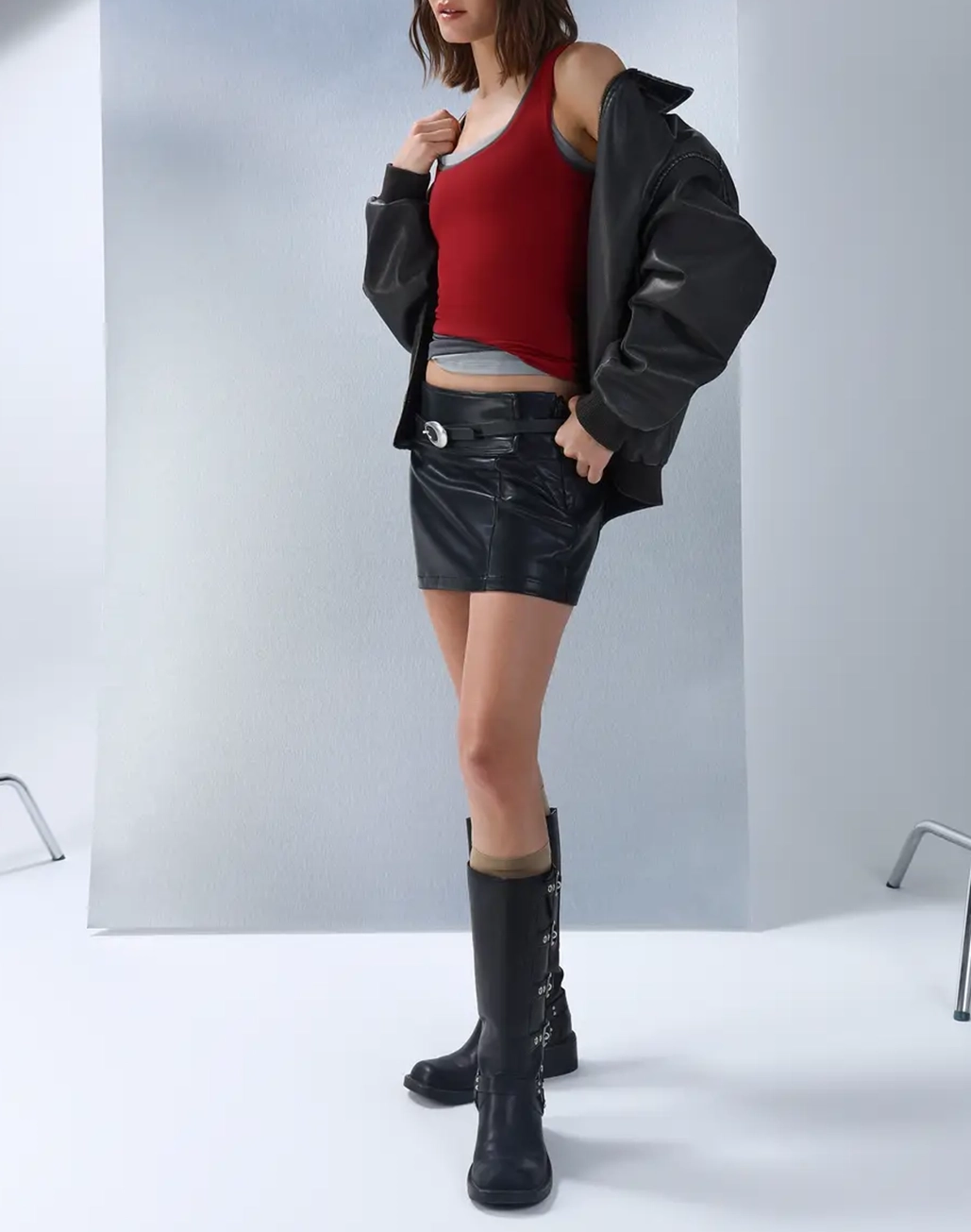 Faux Leather Bomber Jacket 52971569